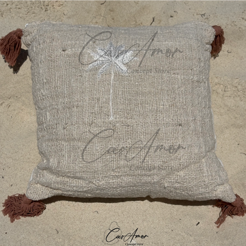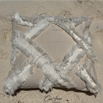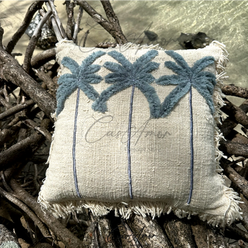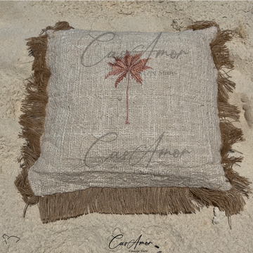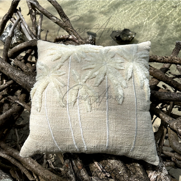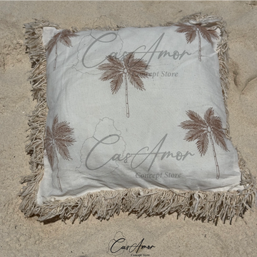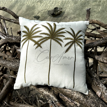 Palm pillows in cotton, combining sofness and freshness, whis an elegant palm-inspired motif.