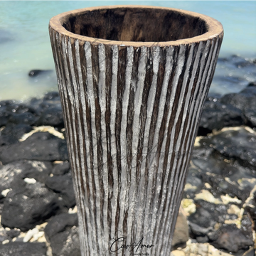 It adds a serene, sophisticated touch to any space, with the subtle white finish enhancing its natural texture, making it a unique and elegant piece for both indoor and outdoor décor.”