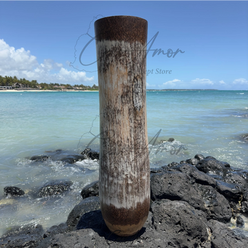 This beautifully crafted palm tree totem, finished with a white patina, measures 100x25 cm and adds a serene, sophisticated touch to any space.