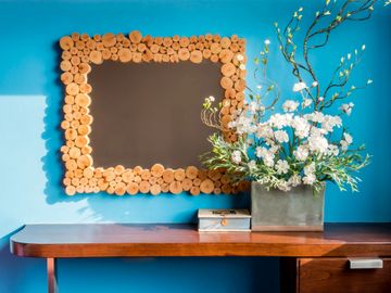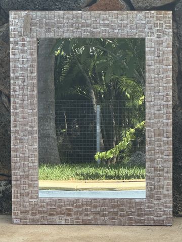 Handcrafted with finely woven exotic wood, this 80x60 cm mirror adds natural elegance and unique charm to any space.