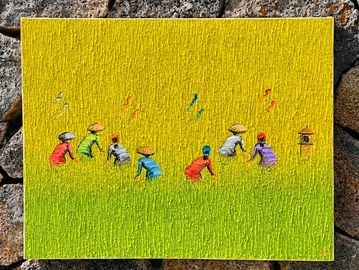 This vibrant hand-painted piece is a beautiful representation of traditional Indonesian art.